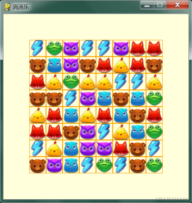 提到开心消消乐这款小游戏,相信大家都不陌生,其曾在 2015 年获得过玩家最喜爱的移动单机游戏奖,受欢迎程度可见一斑,本文我们使用 Python 来做个简单的消消乐小游戏。\