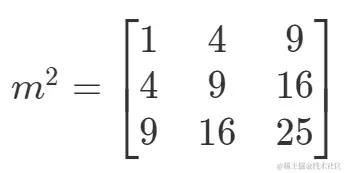 矩阵元素求和,根据前面所述,写成 m**2,会得到新的矩阵,然后求和,直接可写为: