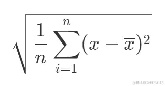 上面公式实际上是样本标准差公式,对于标准差,numpy 提供了简便方法 std, 直接用 np.std(x) 就可以计算,当然现在我们根据标准差公式: