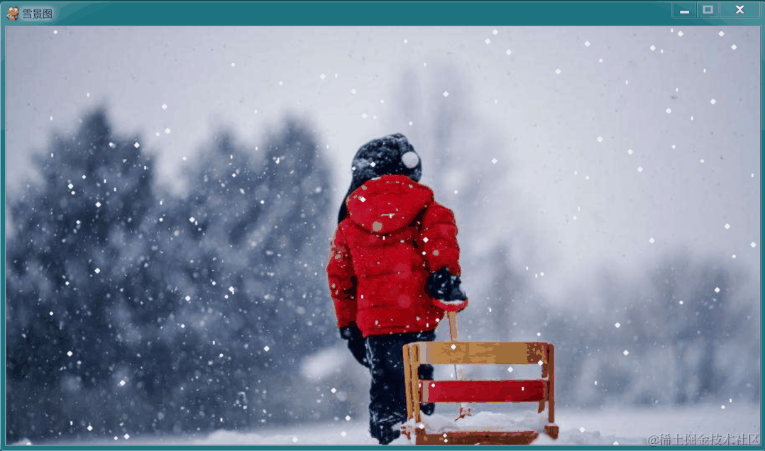 大家如果想看(听)带音乐的雪景图,可以自己运行程序感受一下,这里就不给大家录视频了。\