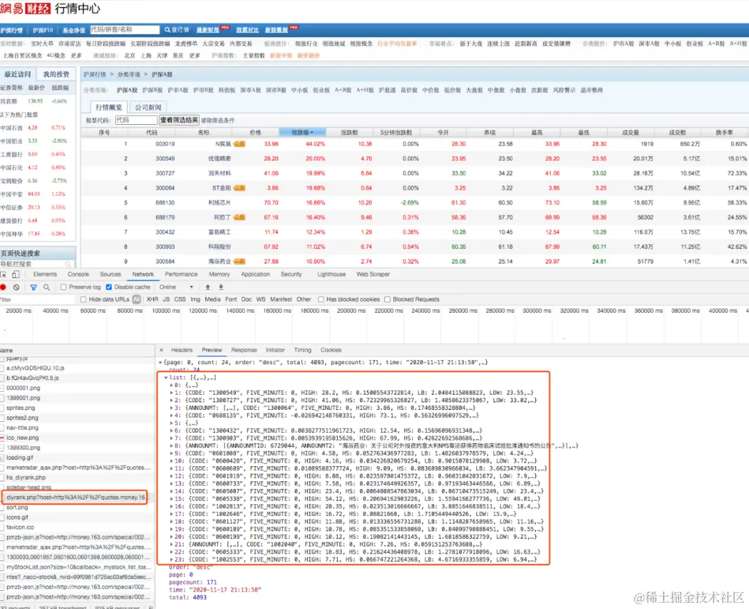 看起来这个返回结果是我们所需要的行情数据。找到它之后,接下来我们再来看看请求参数: