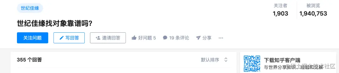 今天在知乎上看到一个关于【世纪佳缘找对象靠谱吗?】的讨论,其中关注的人有 1903,被浏览了 1940753 次,355 个回答中大多数都是不靠谱。用 Python 爬取世纪佳缘的数据是否能证明它的不靠谱?\