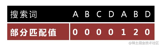 PMT中的"部分匹配值"就是"前缀"和"后缀"的最长的共有元素的长度。