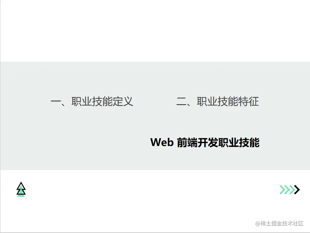 由图要知道第一,职业技能定义是:利用HTML、CSS、JavaScript、网页开发框架等专业知识、方法和工具将产品UI设计稿实现成网站的技能。