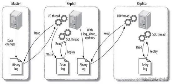 - SQL线程读取中继日志,并在从服务器中重放。