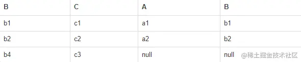 右外连接: select L.`*`,R.`*` from L right join R on L.b=R.b