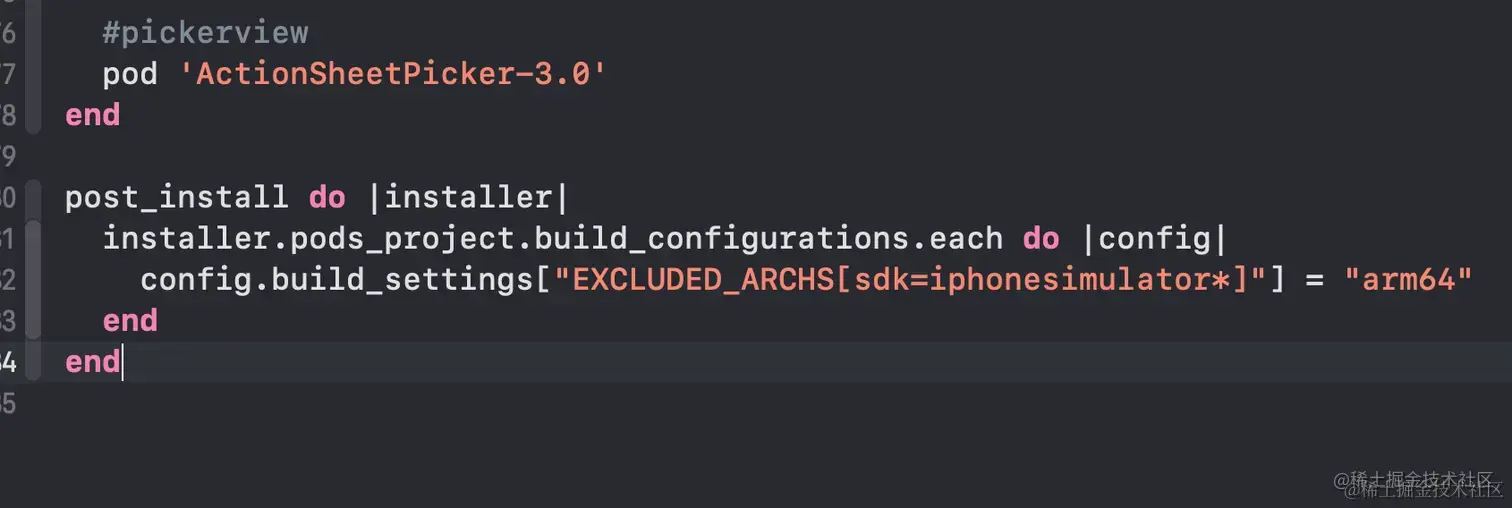 config.build_settings["EXCLUDED_ARCHS[sdk=iphonesimulator*]"] = "arm64"