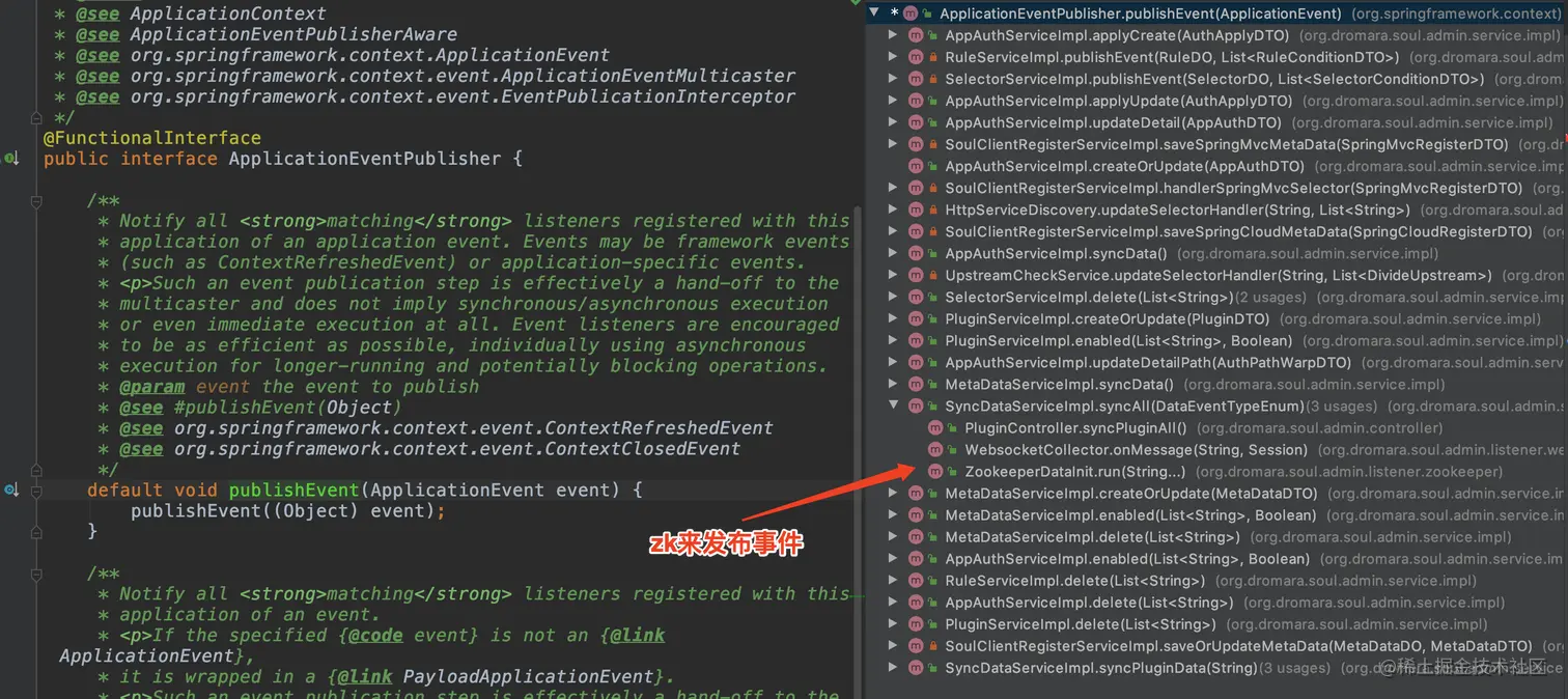 又到了昨天的 Spring 框架中的事件发布类 ApplicationEventPublisher,看一下有哪些调用者。