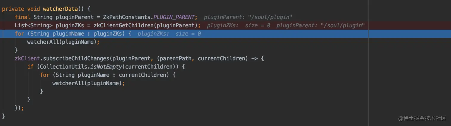 watcherRule(pluginName); // 项目启动时,将MetaData缓存到本地缓存MetaDataCache的META_DATA_MAP并创建对应zk节点