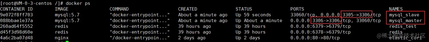 创建容器并挂载(我这里 3306 是主,3305 是从) 3305:3306 表示将容器内部的 3306 端口映射到服务器的 3305 接口,这样外部可以通过服务器的 3305 接口访问容器内部的 MySql 服务器