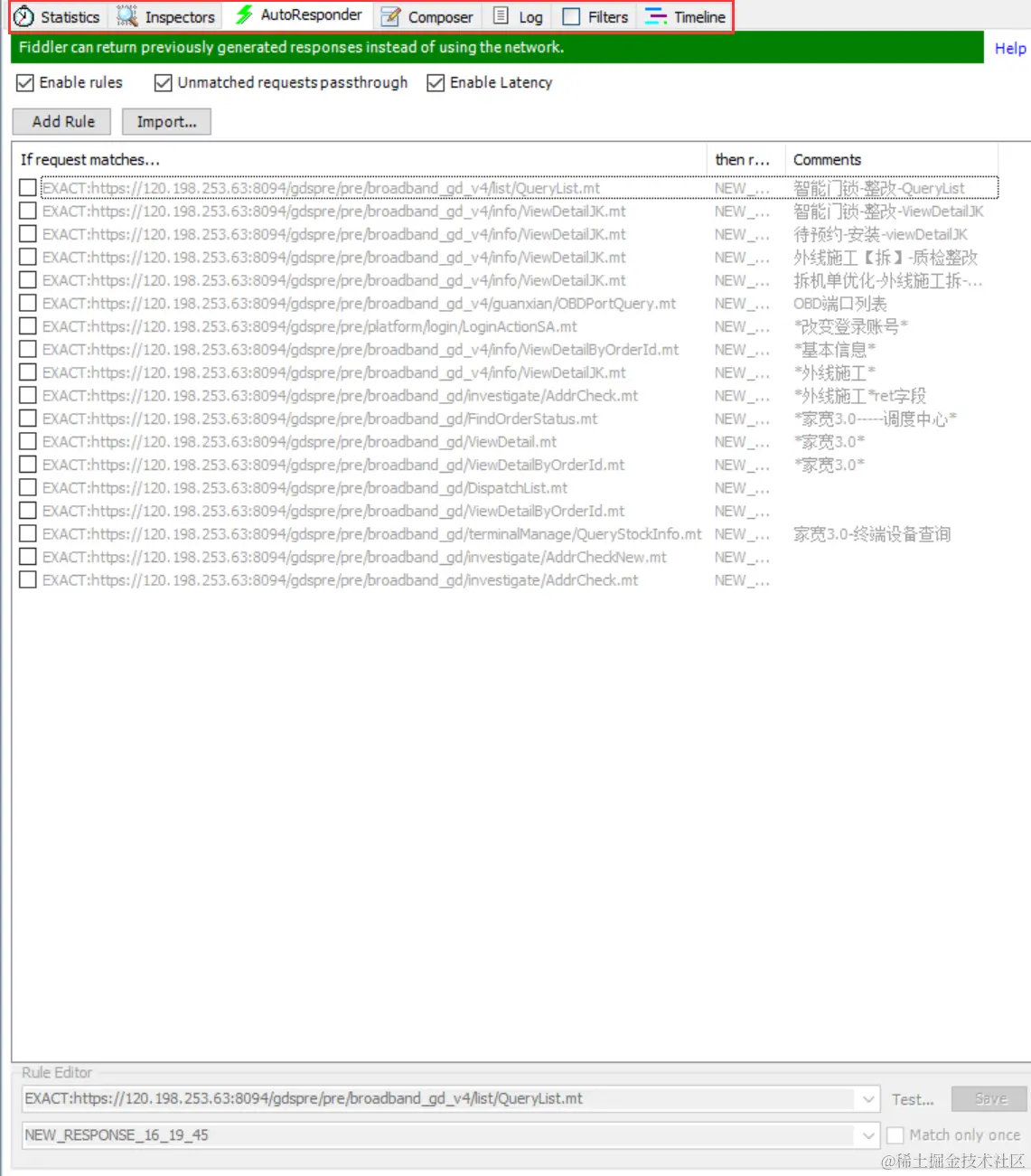 - AutoResponder 允许拦截指定规则的请求:自定义创建请求;