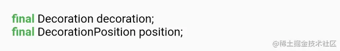 对应一个 CodeParser 类用于解析代码字符串。实现通过 _parseContent 方法,使用 StringScanner 对文本进行扫描。通过正则表达式 RegExp(r'\w+') 可以匹配单词,如果该单词为 final ,就收录到 _spans 中。扫描完毕后通过 _formInlineSpanByBean 生成 InlineSpan。