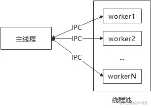GDS使用多线程模式,由主线程负责接收请求,然后分配给工作线程进行具体的业务处理,可以并发处理导入导出业务。主线程与工作线程通过UnixSocket进行通信,通信内容包括:分派新任务、停止工作线程、工作线程状态上报等。