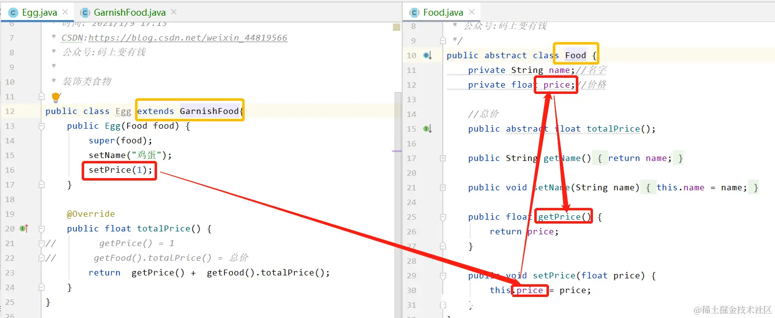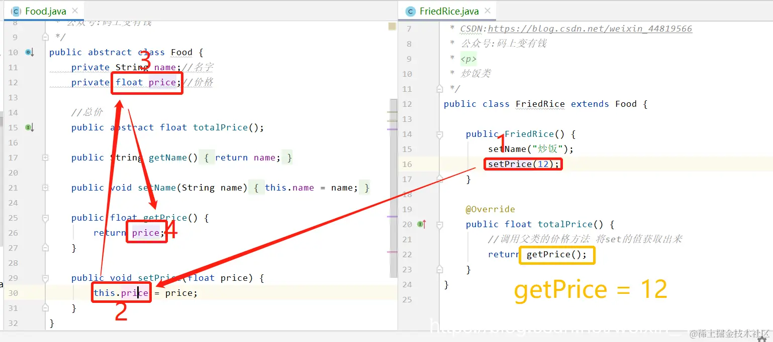 这里如果调用FriedRice(炒饭)构造器的话先把炒饭的价格赋值上去