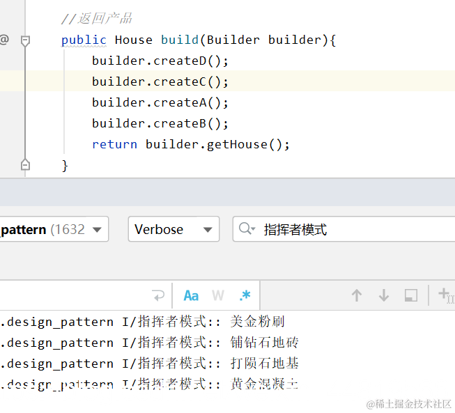 Log.i("指挥者模式:","黄金混凝土");