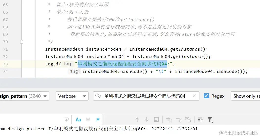 假设我现在要执行100次getInstance() 那么这100次都要进行线程同步,而不是直接返回实例对象 我想要的结果是,如果现在已经存在实例,那么直接return给我实例对象即可 因为是线程同步,所以会排好队一个一个执行,效率低