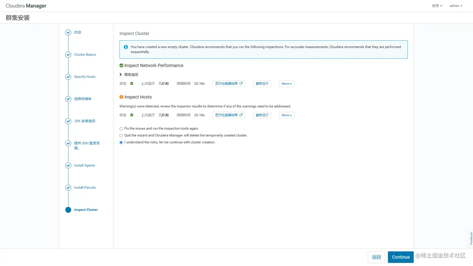 25.进去集群管理界面(相关异常可根据调试参数优化)