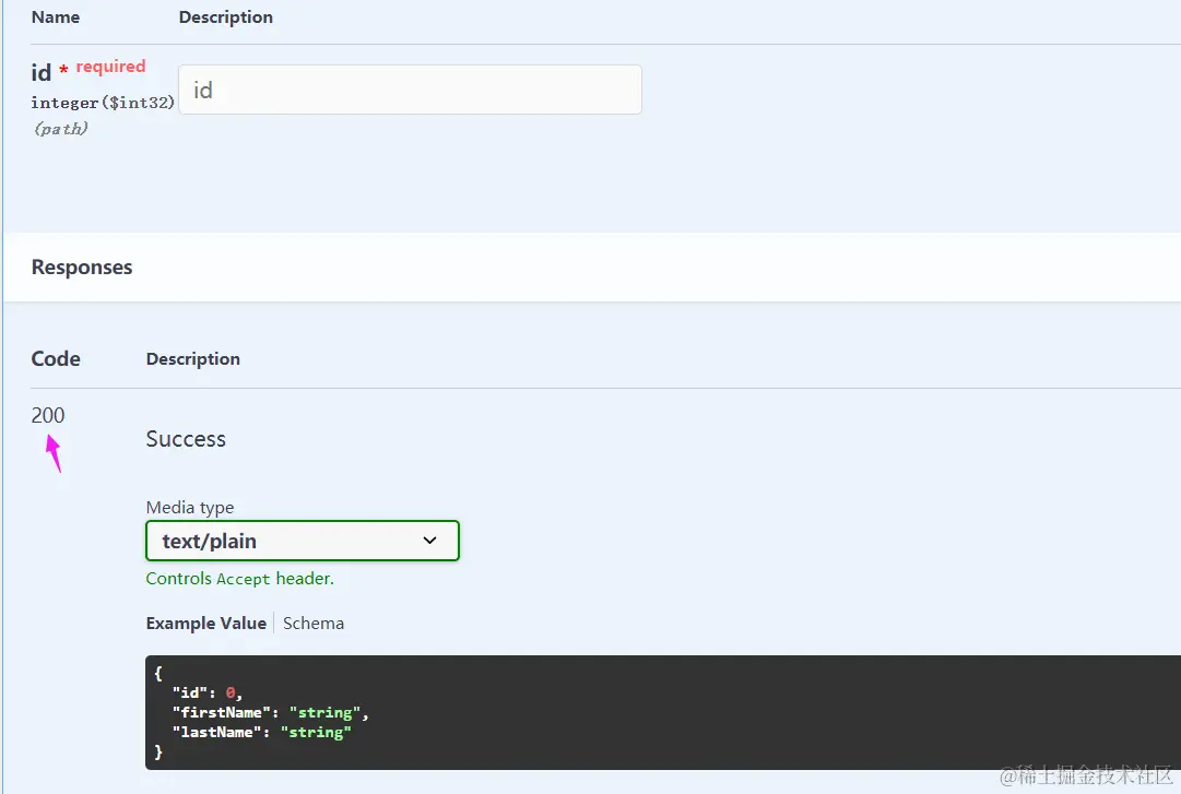 值得注意的是,Swagger 默认只会列出 HttpStatus =200 的 Response 信息,如下图: