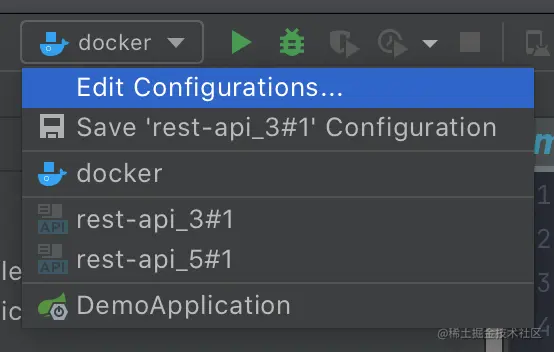 | 选中Edit Configurations··· 添加一个docker的运行脚本。 |