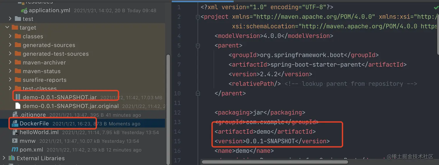#复制上下文目录下的target/demo-1.0.0.jar 到容器里