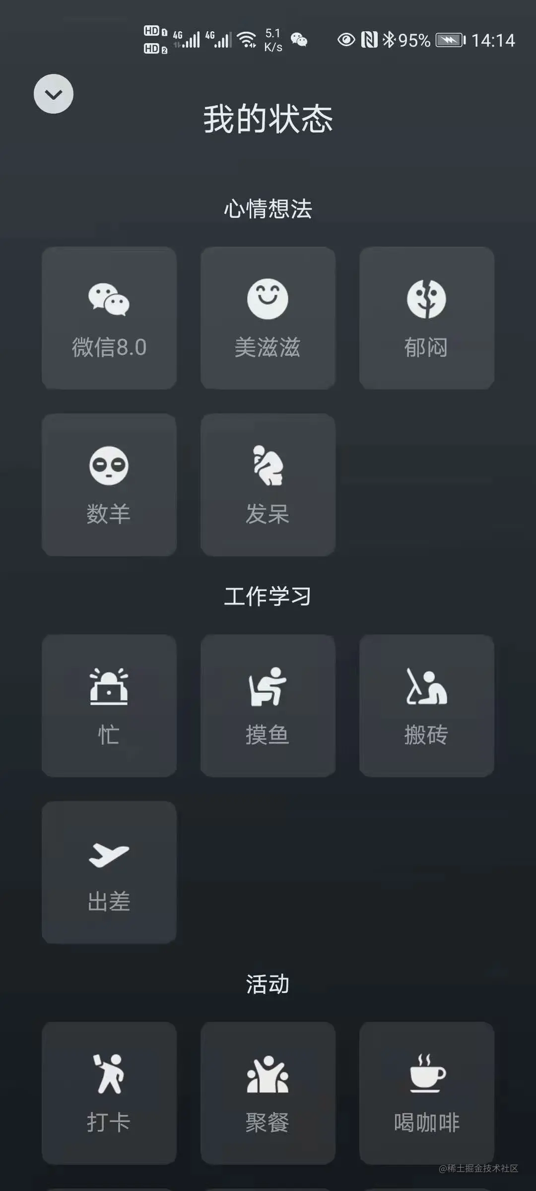 微信8.0更新啦,小黄脸竟然会动 理论上的老班长 2021-01-22 298 阅读1分钟 微信8.0 昨天微信官方更新了微信8.0的内测版本,据腾讯的更新说明是该版本更新了若干功能。个人觉得还是比较好玩的,挺有新意。本次更新统计大概有开屏动画、动起来的小黄脸、个人主页新增状态、强化下拉小程序菜单、多任务悬浮窗优化、朋友圈音乐分享卡片更新另外还出现一个微信豆,目测是配合微信新推出直播而做出的改变。 开屏动画 动起来的小黄人 个人主页状态 小程序菜单 微信豆 微信8.0地址 关注微信公众号尘年码事回复微信8.0获取下载地址。