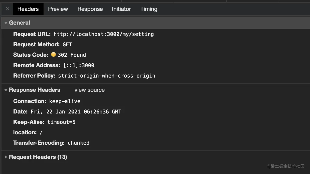 刷新页面,可以看到浏览器跳转到了http://localhost:3000,看一下网络