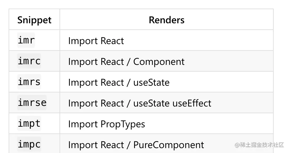 常规的Simple React Snippets 可以通过简单的字母组合来生成一段react代码。