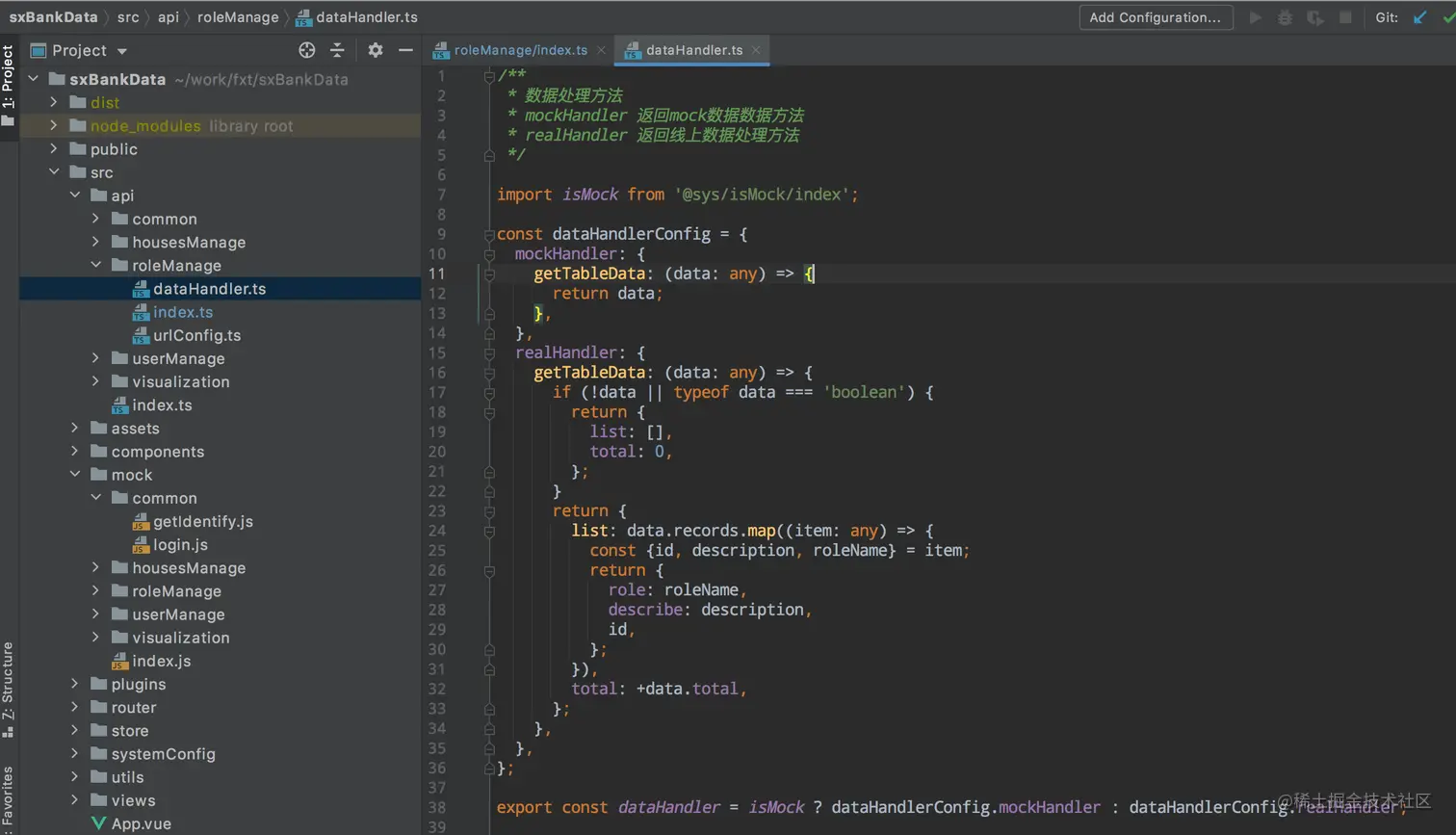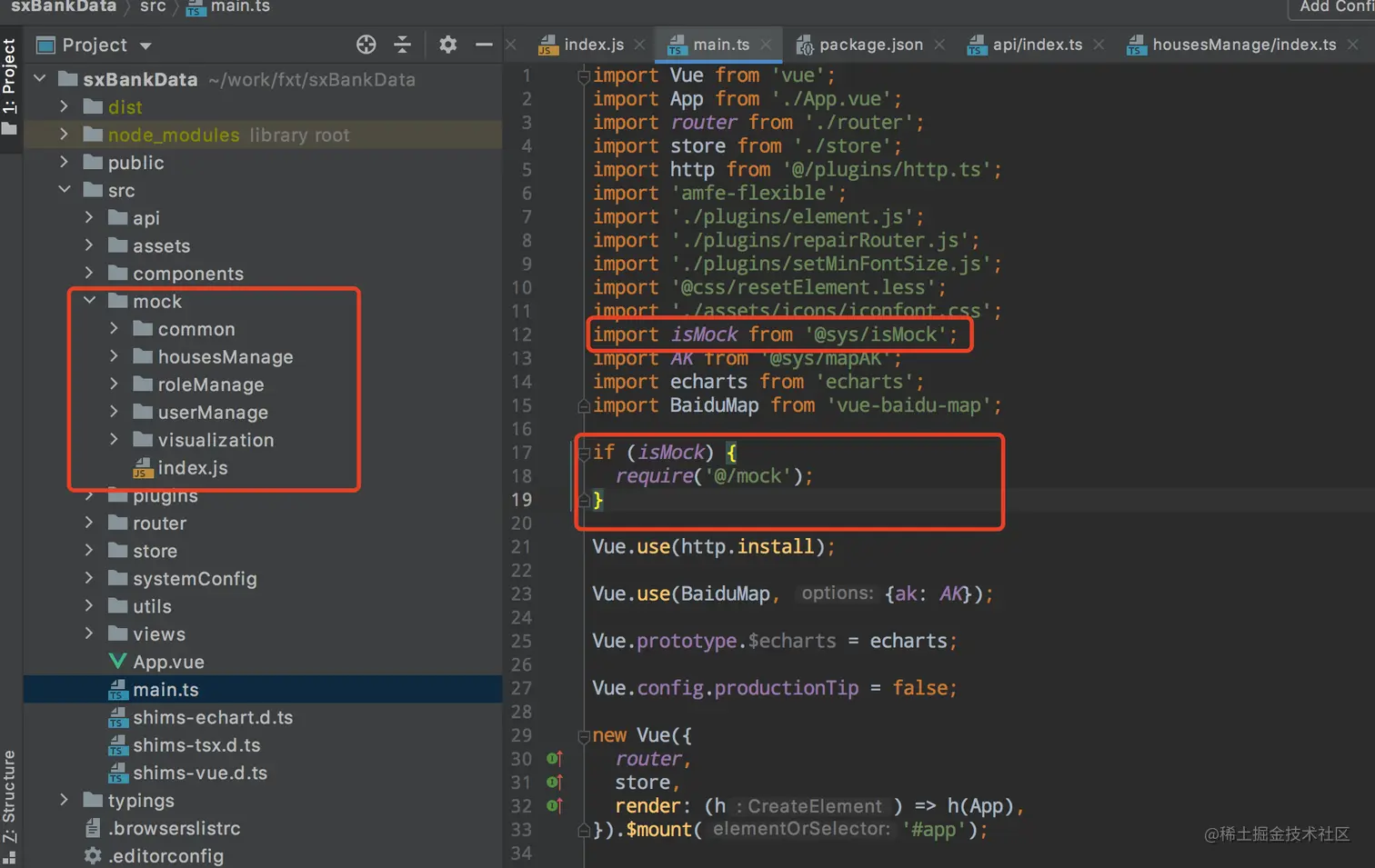 添加mock目录,并在入口判断是否mock环境来引入mockjs,其中@sys是自定义路劲别名。