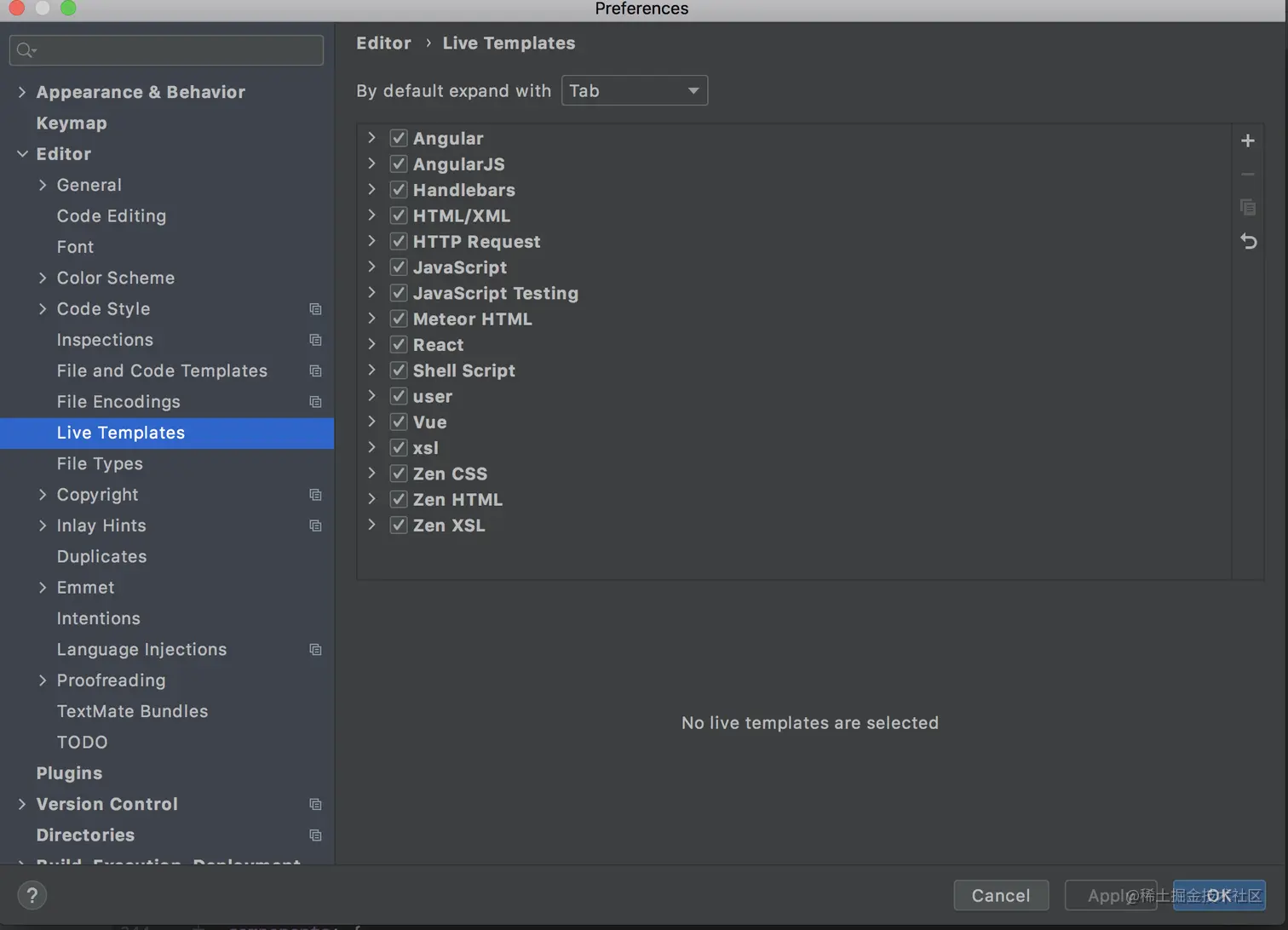 打开编码器设置 --> Editor --> Live Templates: