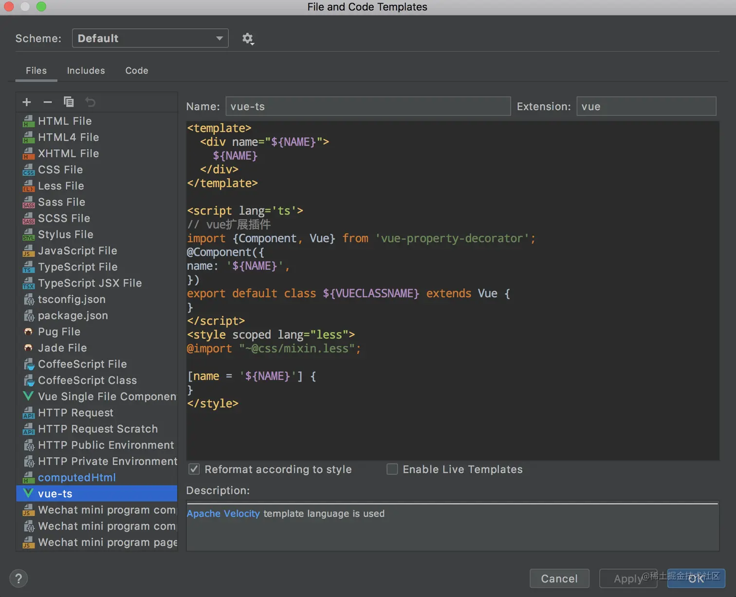 在这里我们可以添加自己的文件模板,在创建新的页面文件时可以节省非常多的时间。