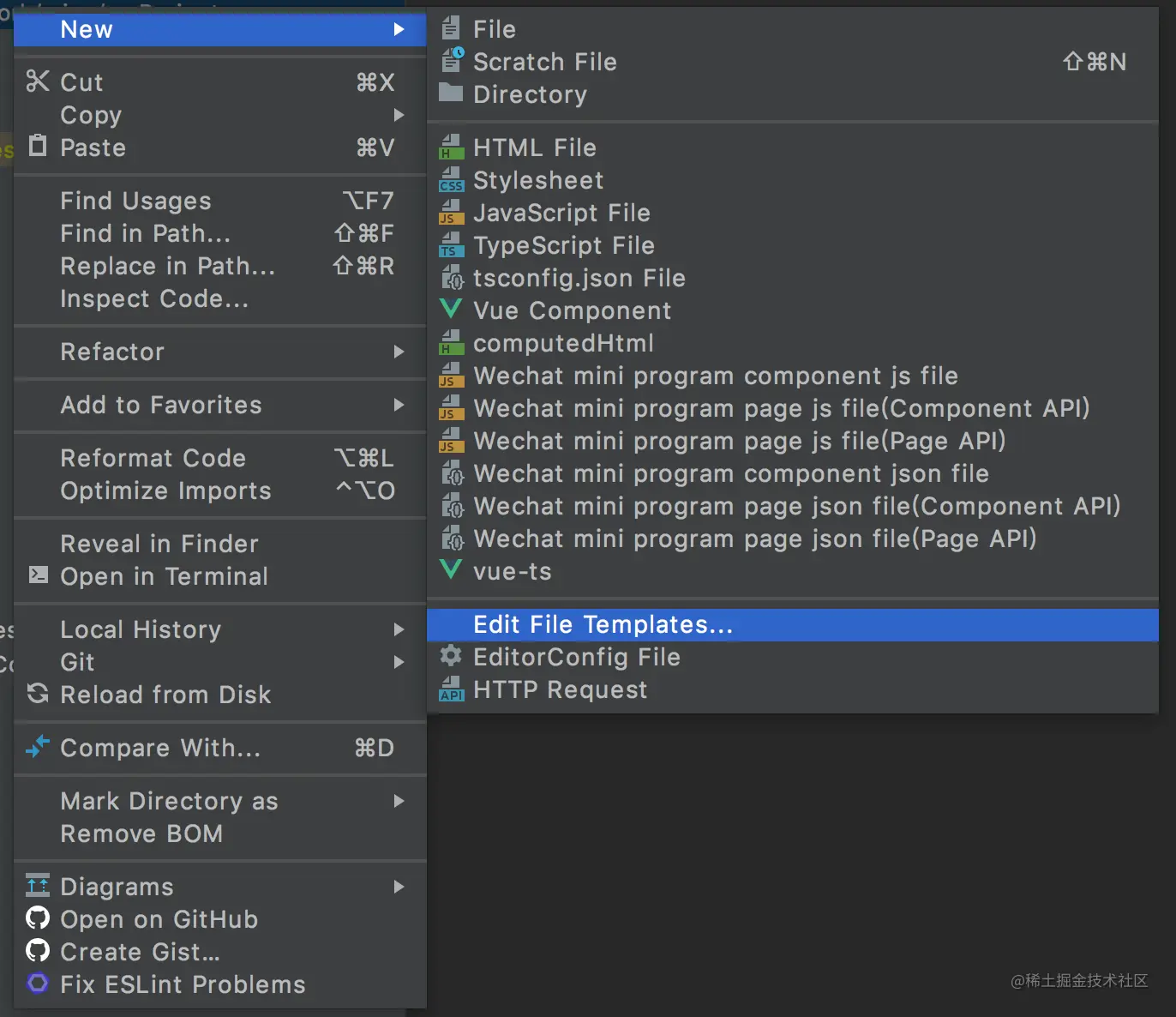 右键任意项目文件 --> New --> Edit File Templates: