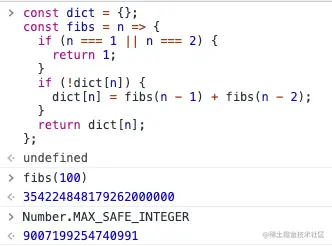 因为计算结果超过 Number.MAX_SAFE_INTEGER,存在被舍去的精度问题,计算结果不能代表正确结果,但在执行效率上相较于递归已经有了质的飞跃。