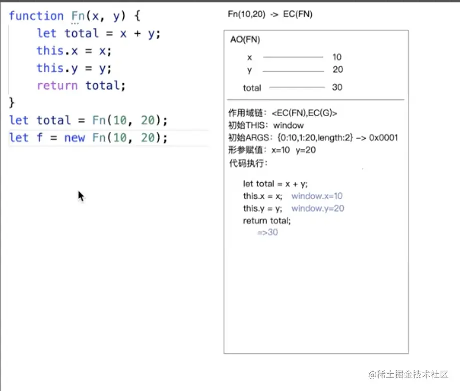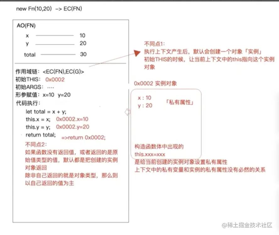 普通的函数执行和构造函数执行的区别主要有两个,仔细看上面的图
