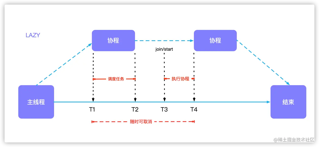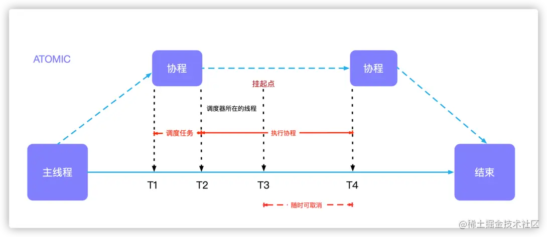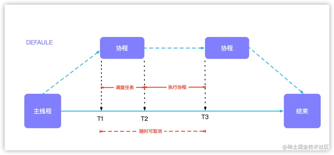 协程创建后。立即开始调度。在调度前如果协程被取消。直接进入取消响应的状态