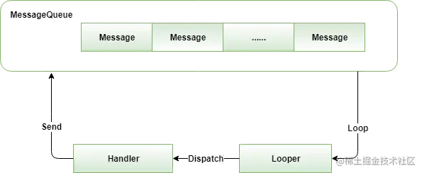 Handler向关联的MessageQueue发送消息; - 消息存储: 把发送的消息以