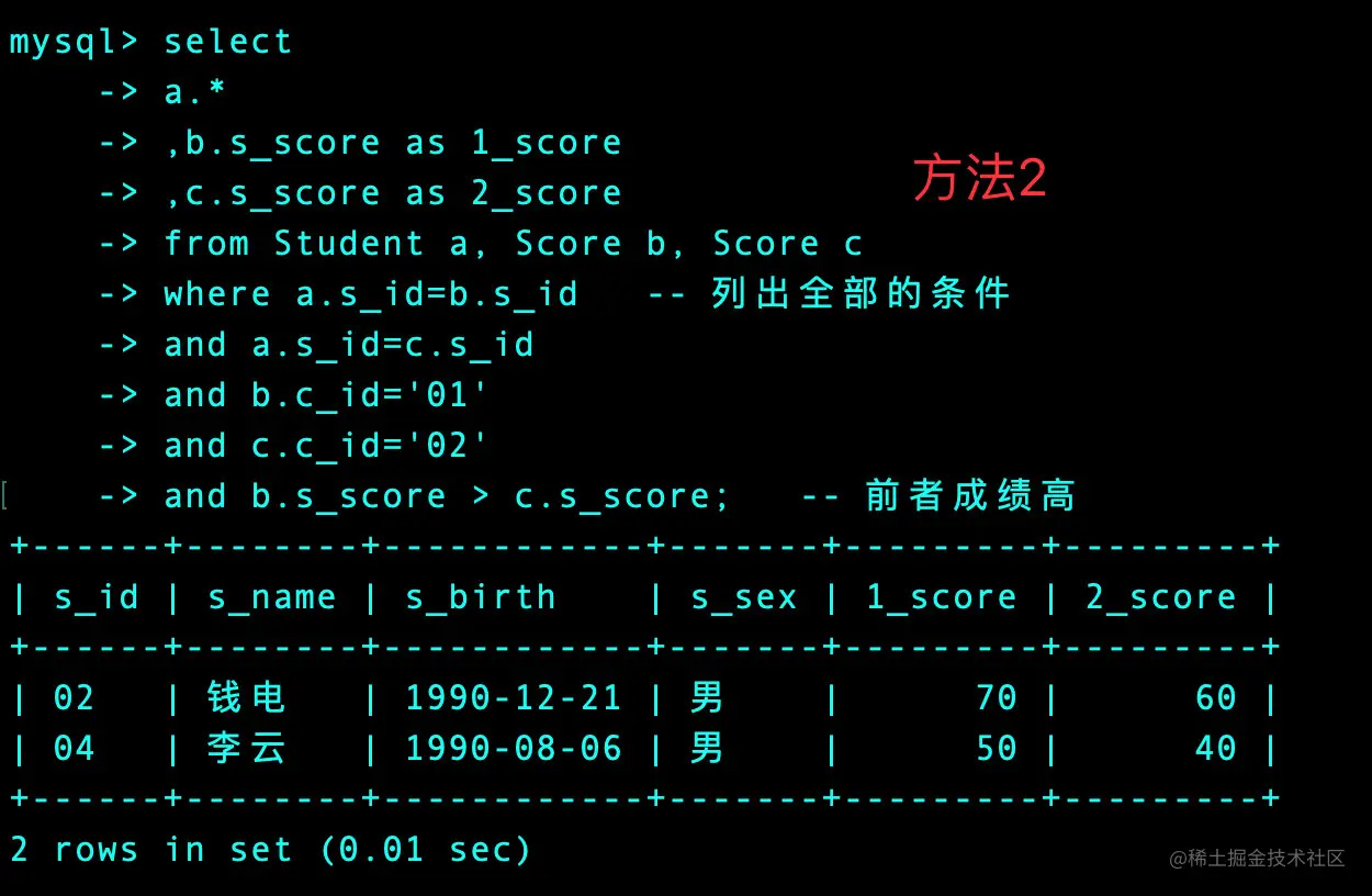 where b.s_score > c.s_score; -- 判断条件