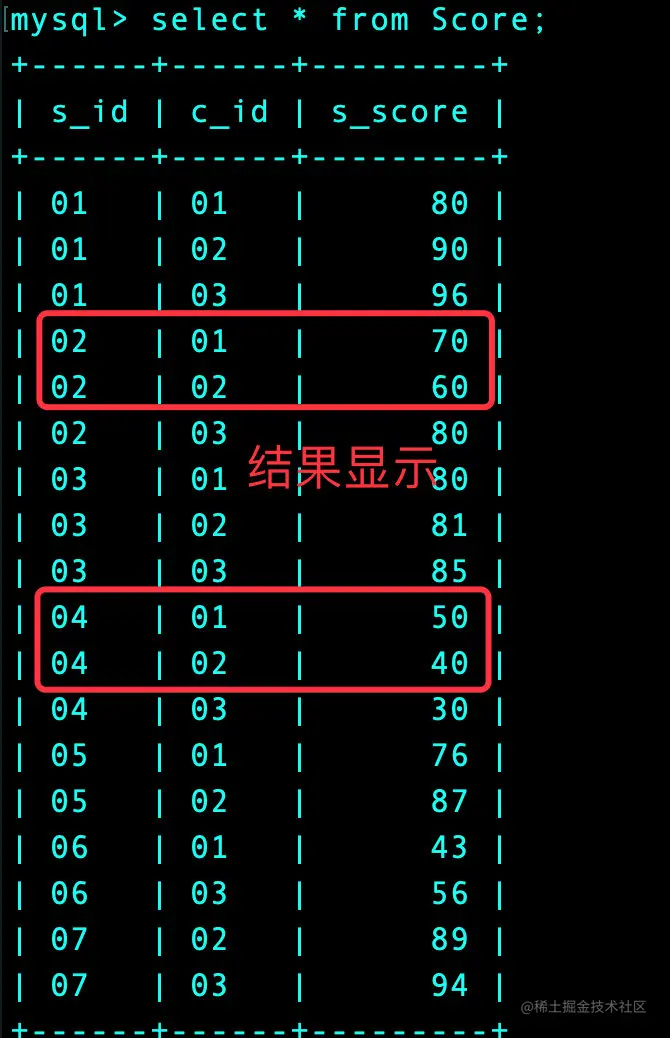 成绩信息:Score表,s_score+s_id
