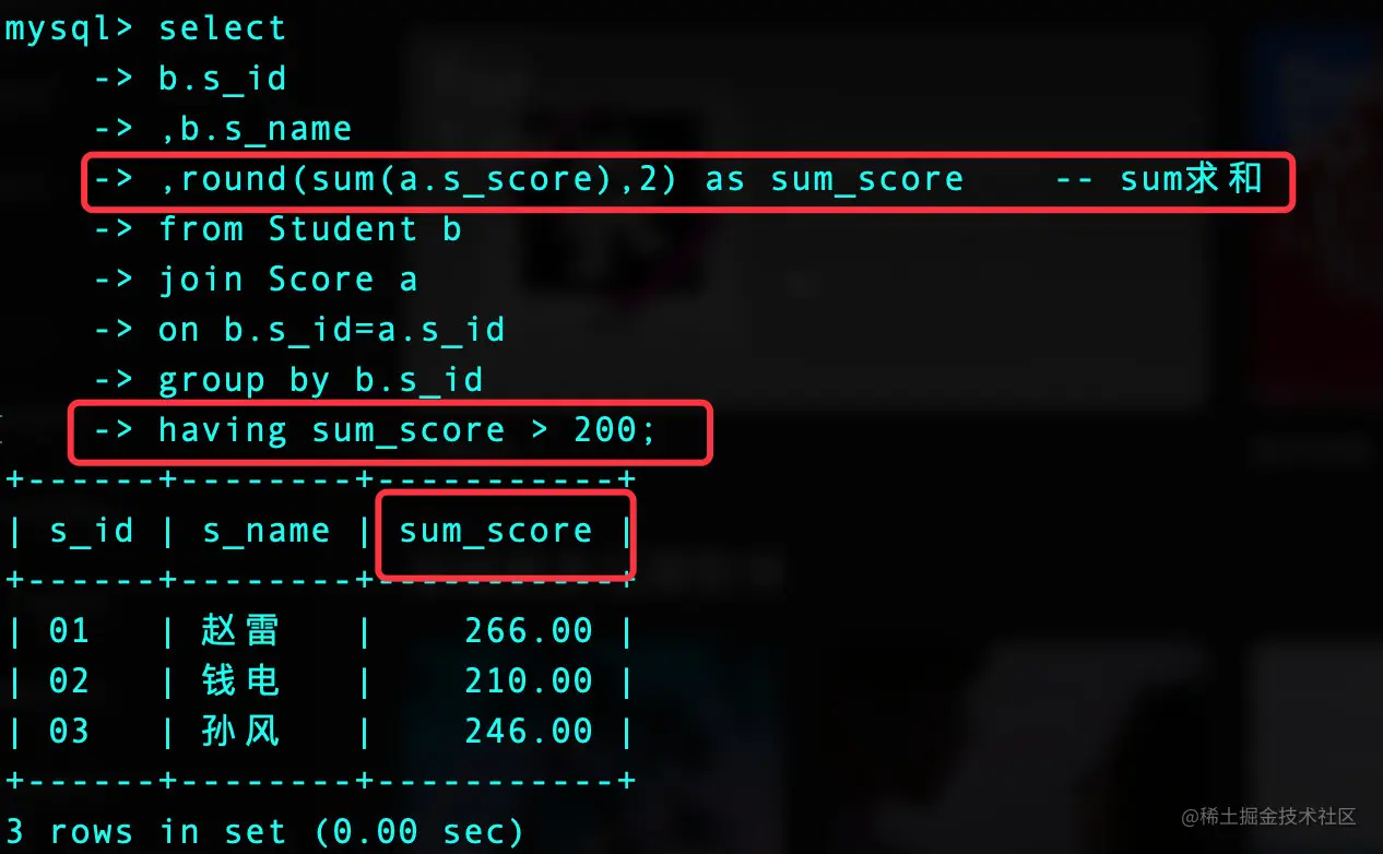 ,round(sum(a.s_score),2) as sum_score -- sum求和