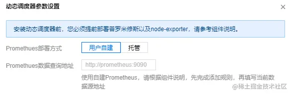 组件依赖较少,仅依赖基础的节点监控组件 node-exporter 和 Prometheus。Prometheus 支持托管和自建两种方式,使用托管方式可以一键安装动态调度器,而使用自建 Prometheus 也提供了监控指标配置方法。