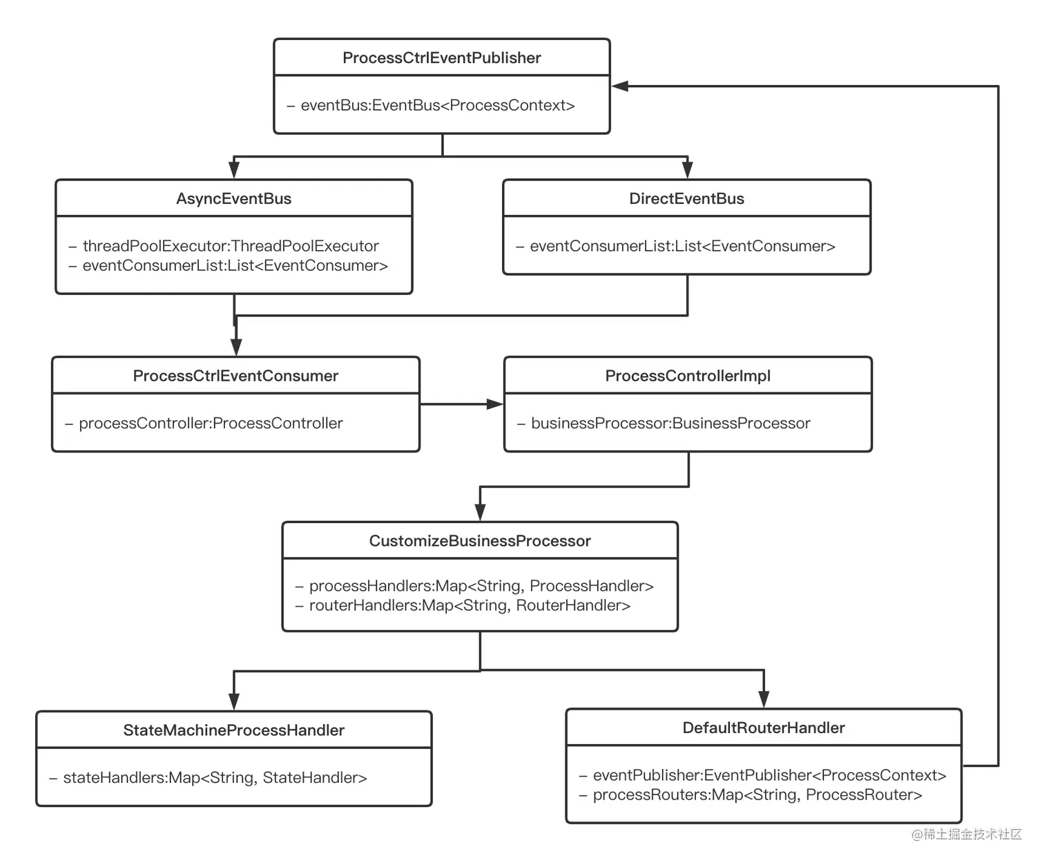 - 初始化ProcessCtrlEventPublisher,用于状态机事件的同步提交,使用的是DirectEventBus来同步处理请求