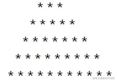题1:用星号输出一个梯形,如下图所示:(使用嵌套for循环完成)
