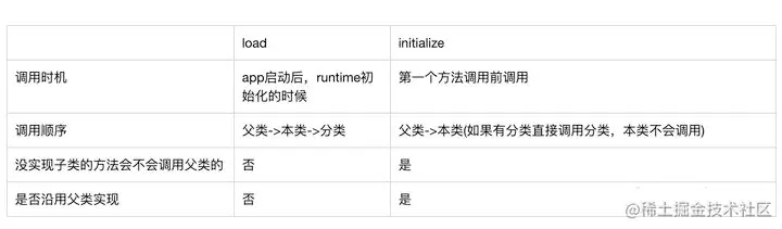 8、load方法和initialize方法的异同。——主要说一下执行时间,各自用途,没实现子类的方法会不会调用父类的?