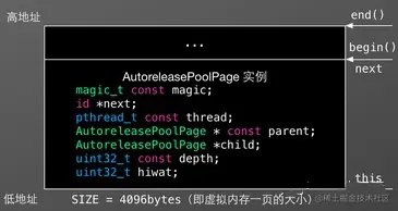 使用场景:多次创建临时变量导致内存上涨时,需要延迟释放 autoreleasepoolpage的内存结构:4k存储大小