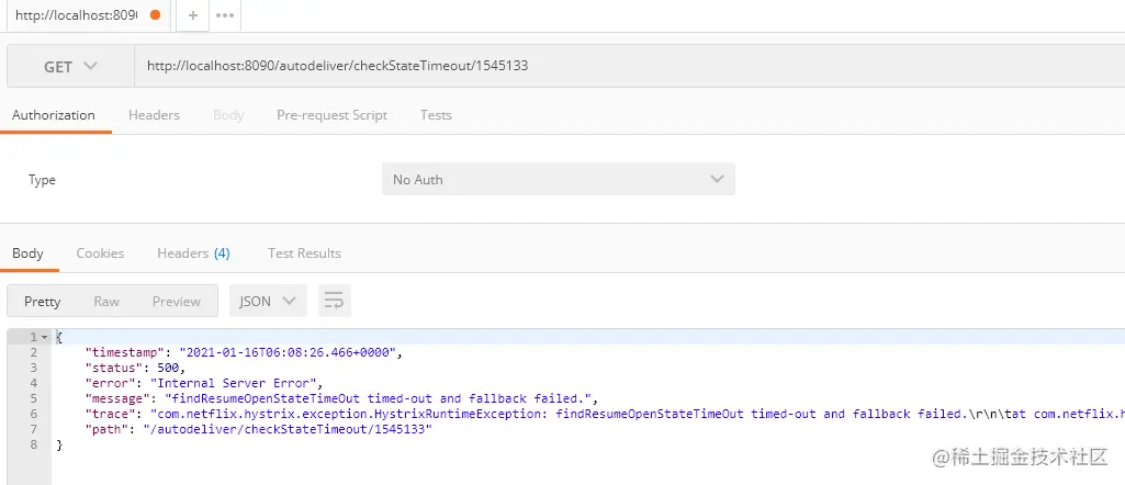 调用正常的简历微服务8081时,没有问题