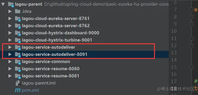 (1)前期准备工作,我们先构建两个自动投递简历微服务 lagou-service-autodeliver-8091,配置和lagou-service-autodeliver一样
