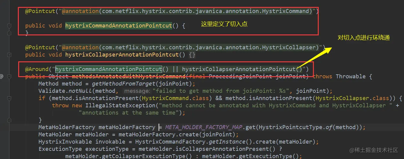 @Around("hystrixCommandAnnotationPointcut() || hystrixCollapserAnnotationPointcut()")