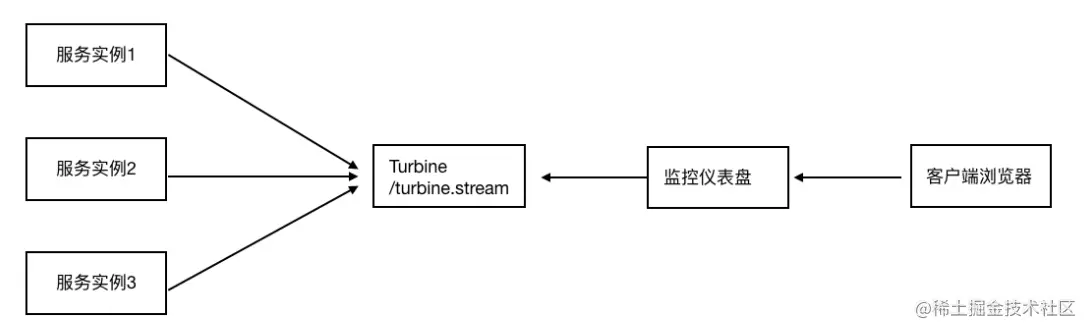 思考:微服务架构下,⼀个微服务往往部署多个实例,如果每次只能查看单个实例的监控,就需要经常切换很不⽅便,在这样的场景下,我们可以使⽤ HystrixTurbine 进⾏聚合监控,它可以把相关微服务的监控数据聚合在⼀起,便于查看