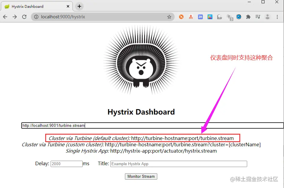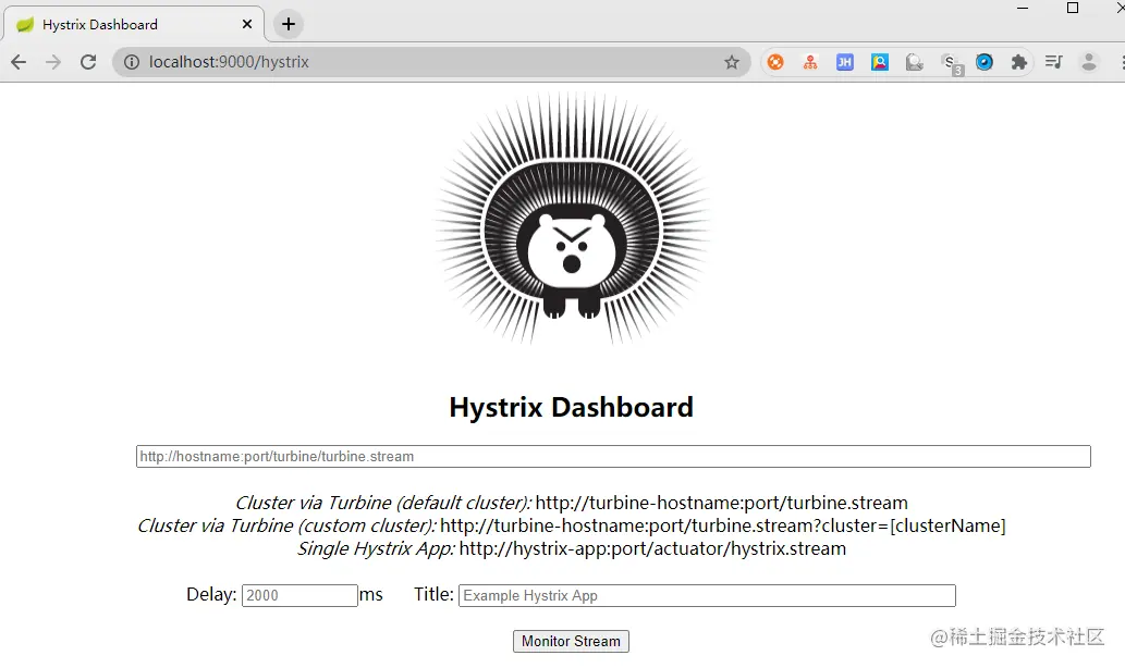 (4)启动项目,访问 http://localhost:9000/hystrix ,可以看到一个豪猪仪表盘