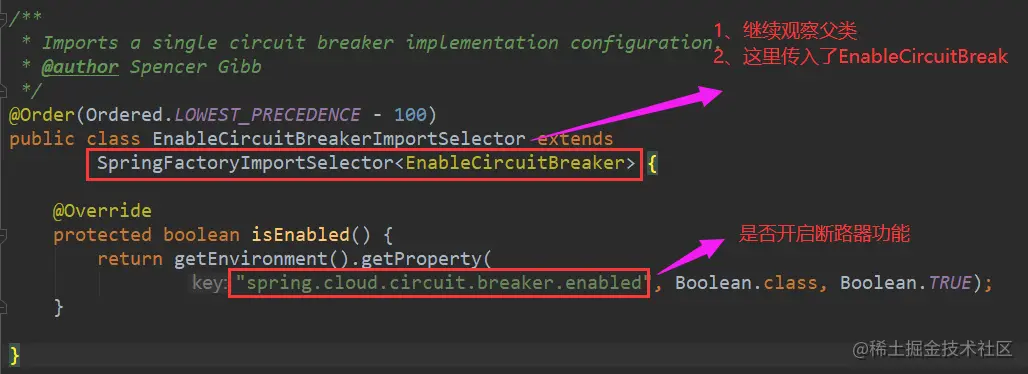 @EnableCircuitBreaker注解激活了熔断功能,那么该注解就是Hystrix源码追踪的⼊⼝