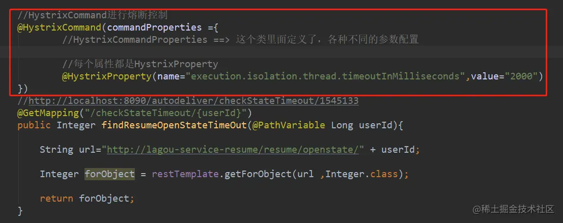 @HystrixCommand(commandProperties ={